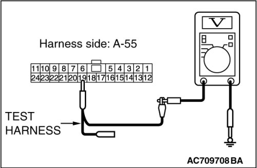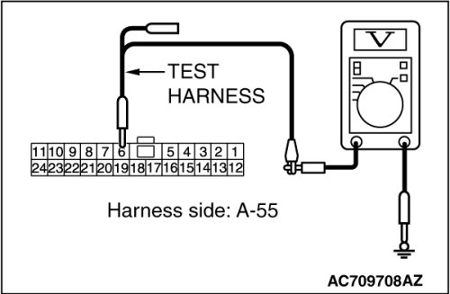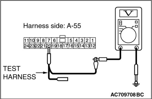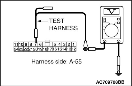 STEP 10. Check the wiring harness between joint connector (CAN4) A-55 and ECM connector B-109 [RALLIART] for a short to power supply. Measure the voltage at joint connector (CAN4) A-55.