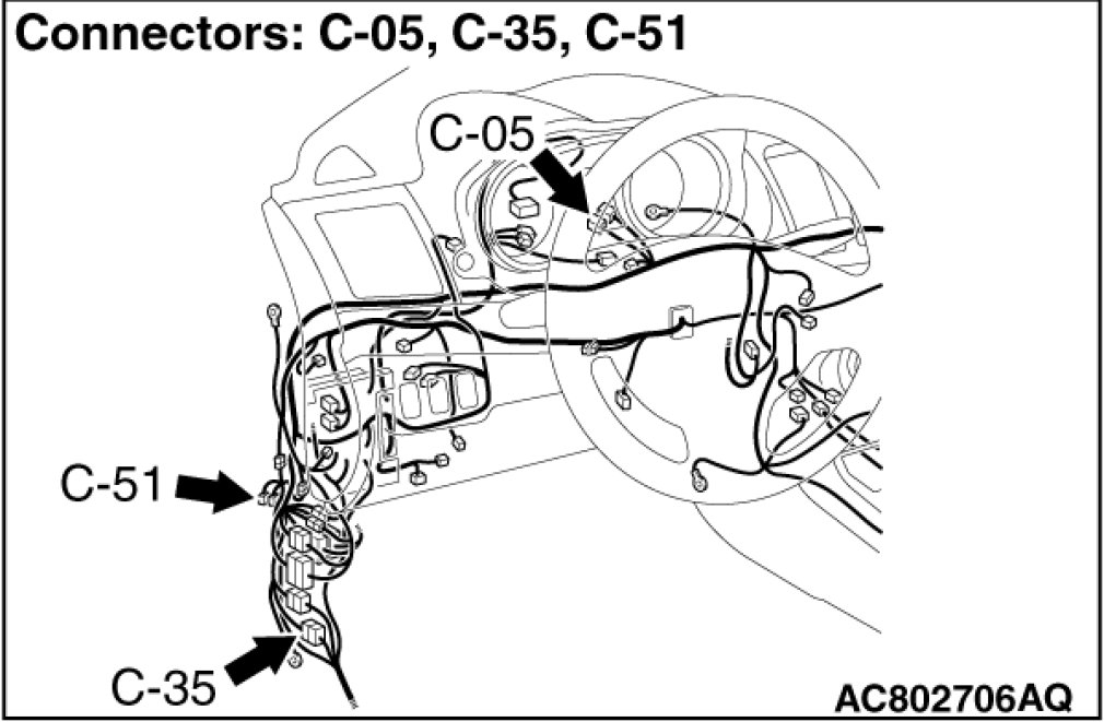 STEP 1. Check joint connector (CAN2) C-05 and AWC-ECU connector C-51 and intermediate connector C-35 for loose, corroded or damaged terminals, or terminals pushed back in the connector.