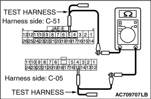 (3)Check the wiring harness between joint connector (CAN2) C-05 (terminal 15) and AWC-ECU connector C-51 (terminal 5)