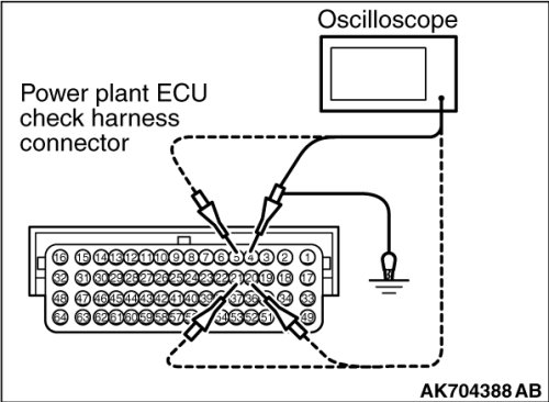 2. Connect the oscilloscope probe to check harness terminal No. 31, No. 32, No. 47 and No.