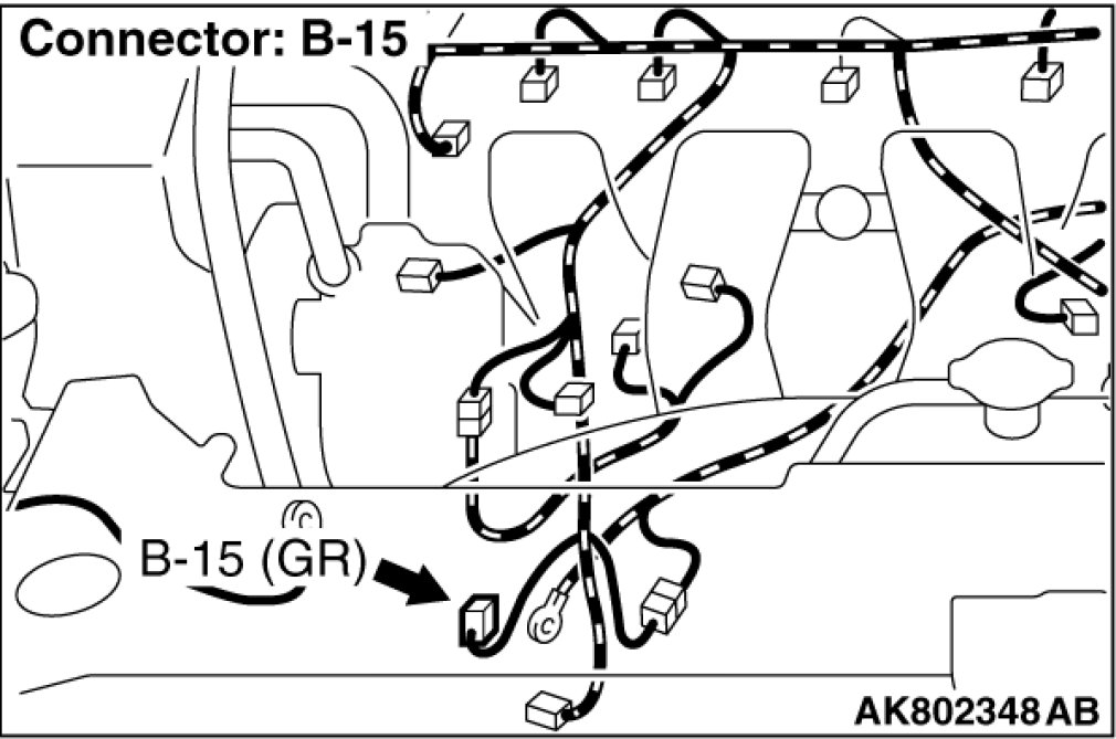 (1)Disconnect all ECM connectors. Connect the power plant ECU check harness special tool MB992110 between the separated connectors.