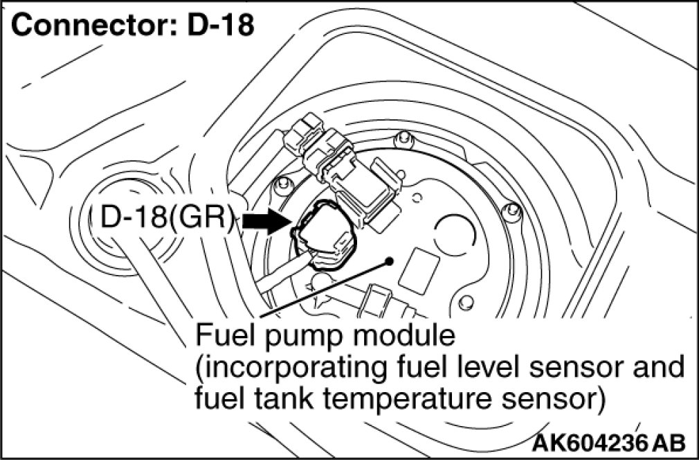 STEP 8. Check harness connector D-18 at fuel pump for damage.