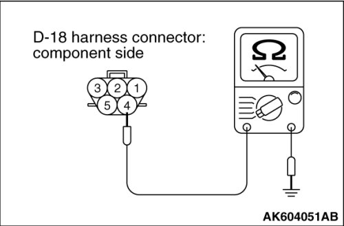 (1)Disconnect the connector D-18 and measure at the harness side.