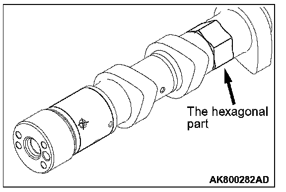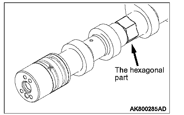 3. Fixing the hexagonal area of the intake camshaft on a vise, install the intake V.V.T. sprocket.
