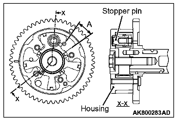 NOTE: The stopper pin is locked in the most retarded angle position.