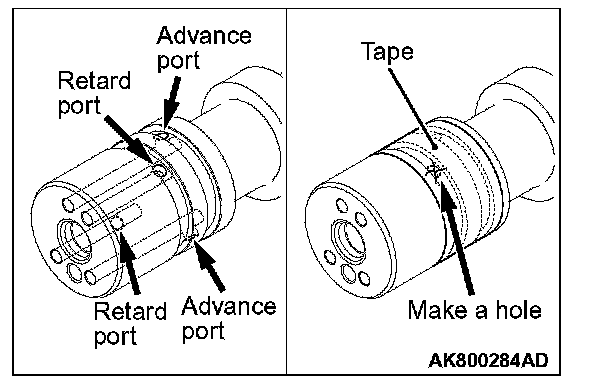 1. Seal with a tape all the intake camshaft ports for the advanced angle and the retarded angle.