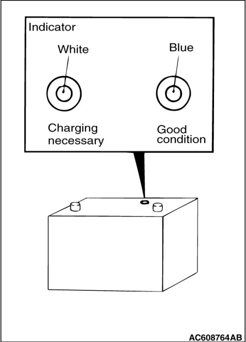 The battery contains a visual test indicator which gives a blue signal when an adequate charge level exists, and a white signal when charging is required.