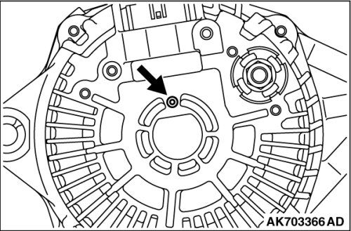 After installing the regulator assembly, insert a piece of wire through the hole in the rear bracket while pressing the brush to keep the brush against movement.