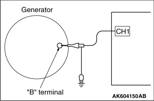 If the ripple height is abnormally high (approximately 2 V or more during idling), the wires between the generator "B" terminal and the battery have broken due to fuse blowing, etc. The generator is usually operating properly.