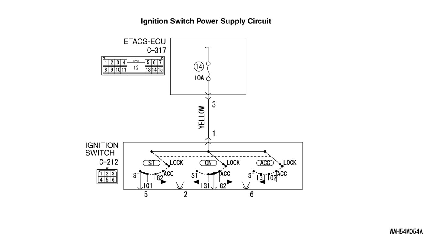 STEP 5. Check the Wiring harness between ignition switch connector C-212 (terminal No.1) and ETACS-ECU connector C-317 (terminal No.3).