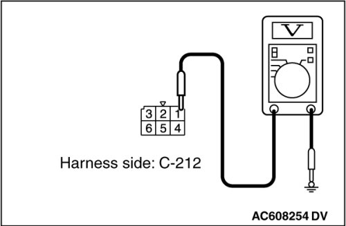 STEP 2. Check the battery power supply circuit to the ignition switch. Measure the voltage at ignition switch connector C-212.