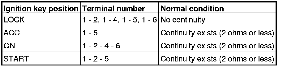 Remove the ignition switch. Then check continuity between the switch terminal.