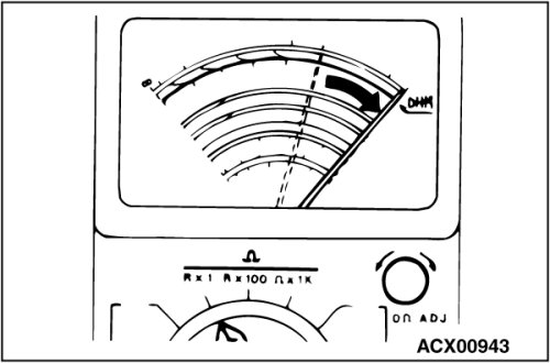 An ohmmeter is used to check continuity or measure resistance of a switch or coil. If the measuring range has been changed, the zero point must be adjusted before measurement.