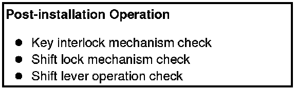 When the transaxle control cable is disconnected, check after the installation that the cable is properly connected, and that the parking lock mechanism operates normally. At this time, do not check by simply using the display on the combination meter and shift indicator panel. Always check according to the procedure below.