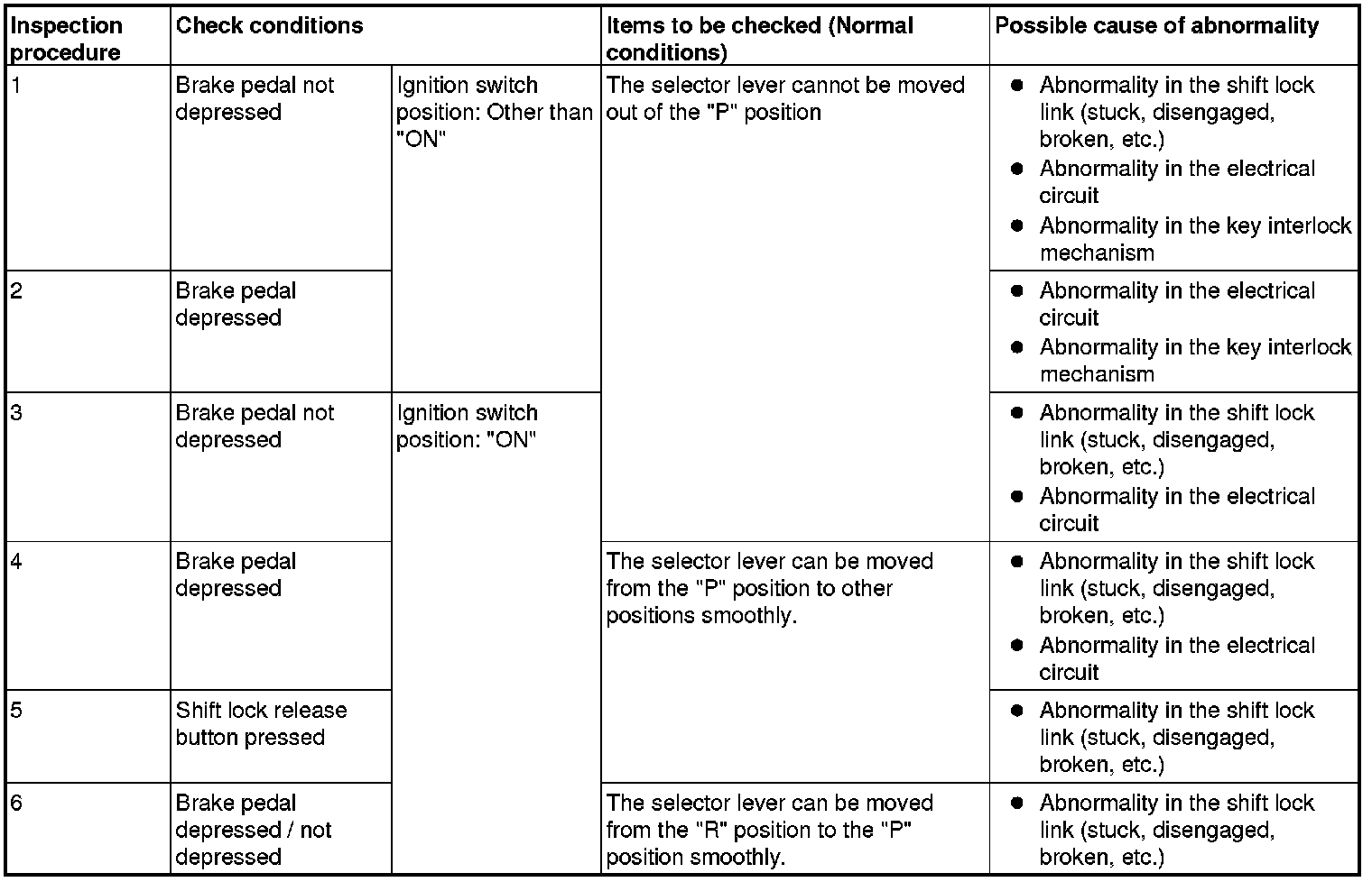 SHIFT LOCK MECHANISM CHECK