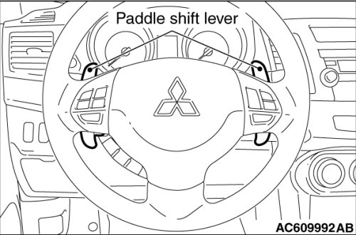 1. Check that the paddle shift lever is returned to the original position quickly when the lever is released after operation of the paddle shift lever (± side) (pulling to the rear side of the vehicle). In addition, check for abnormal looseness, friction and abnormal noise.