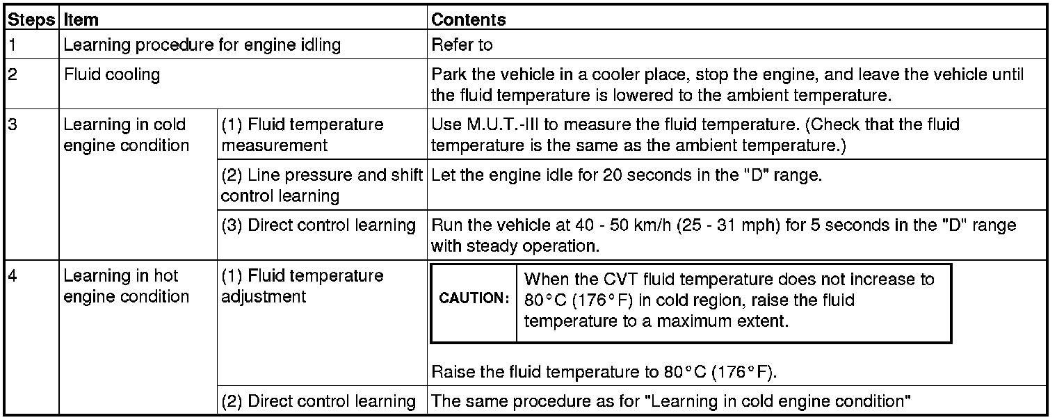 Learning Procedure For Continuously Variable Transaxle (CVT) Hydraulic Control