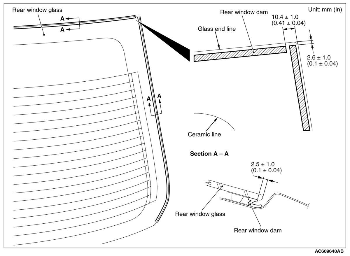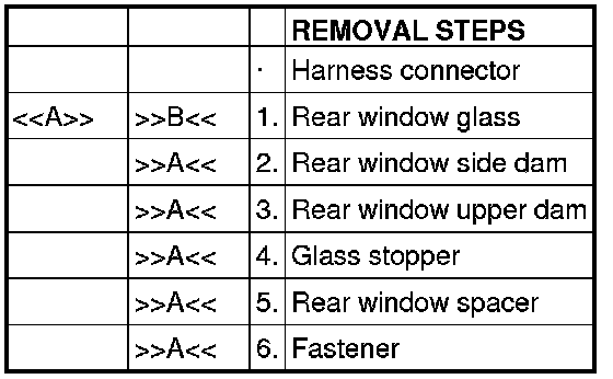 ]]A[[ FASTENER/REAR WINDOW SPACER/GLASS STOPPER/REAR WINDOW UPPER DAM/REAR WINDOW SIDE DAM INSTALLATION