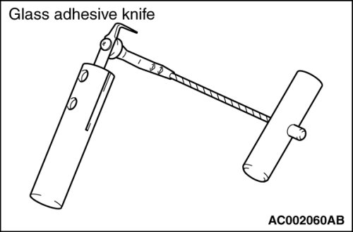 5. Use special tool MB990480 to remove the windshield glass.
