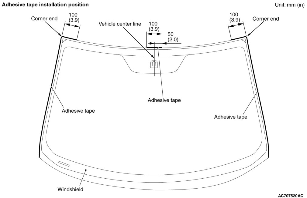 Install the adhesive tape (double-sided tape) to the windshield glass.