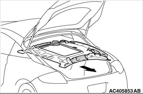 Turn the headlining assembly 90° as shown and remove it from the liftgate side.