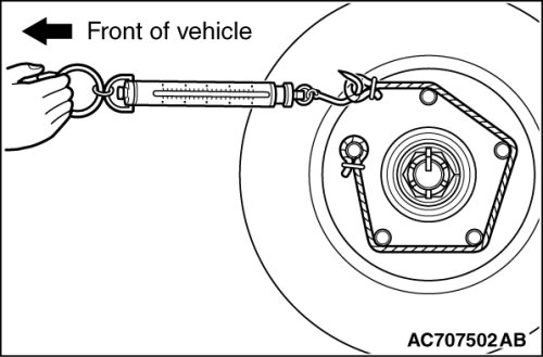 2. Using a spring scale, measure the hub sliding torque in the forward direction with the brake pad, shim and clip removed.