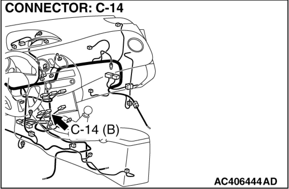 STEP 1. Check A/C-ECU connector C-14 for loose, corroded or damaged terminals, or terminals pushed back in the connector.