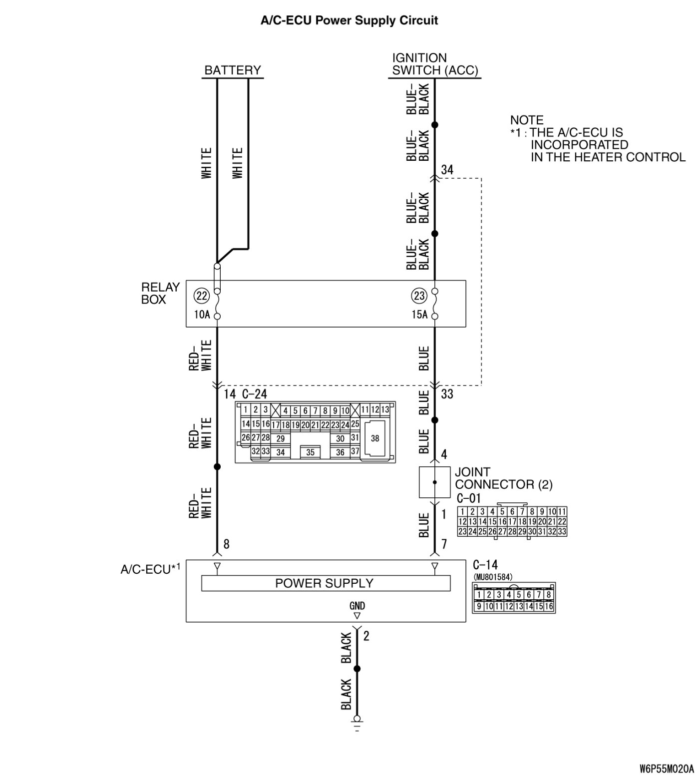 INSPECTION PROCEDURE 1: Malfunction of the A/C-ECU Power Supply System.
