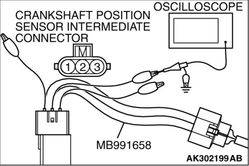 3. Disconnect the crankshaft position sensor intermediate connector, and connect the test harness special tool (MB991658) between the separated connector.