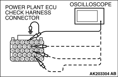 3. Connect the oscilloscope to check harness terminal No. 103. (Check the crankshaft position sensor signal wave pattern.)