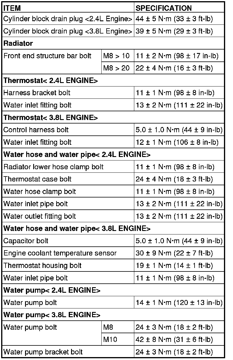 FASTENER TIGHTENING SPECIFICATIONS