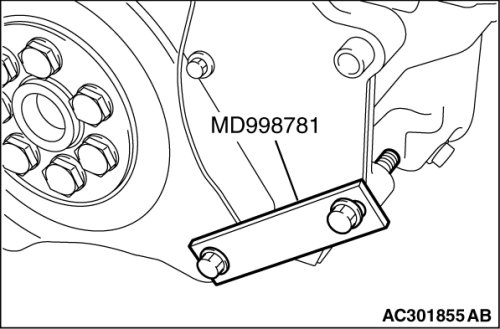 1. Use special tool MD998781 to secure the flywheel assembly or A/T drive plate in the same manner as removal.