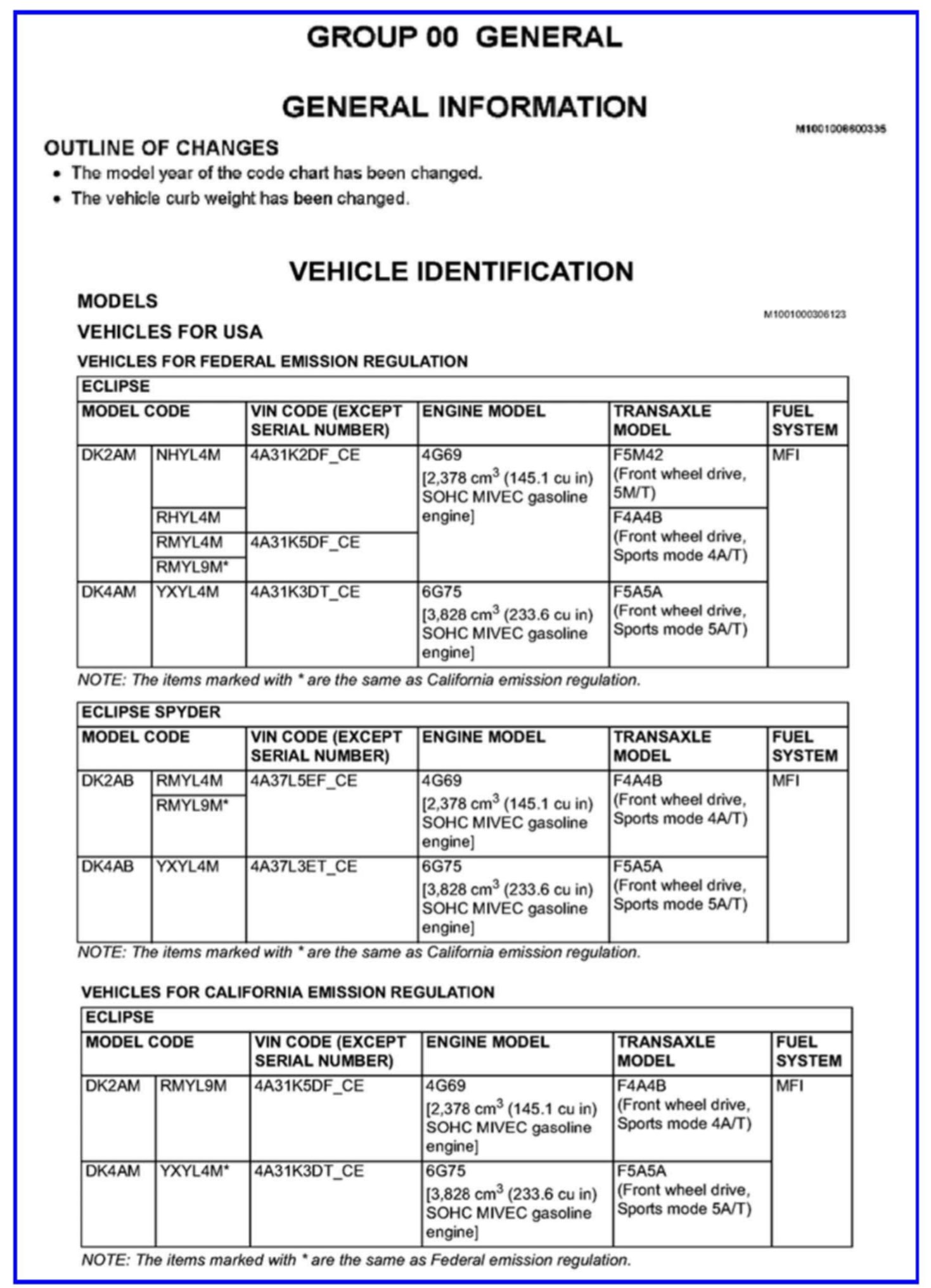 ^ Group 00 - General: Changes to VIN Information and General Specifications