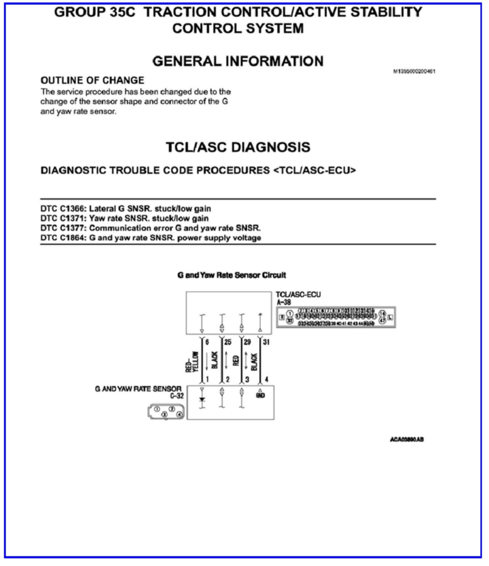 ^ Group 35C - Traction Control/Active Stability Control System: Changes to G and Yaw Rate Sensor connector number of pins reduced. Requires changes to diagnosis of DTCs C1366, C1371, C1377 and C1864.