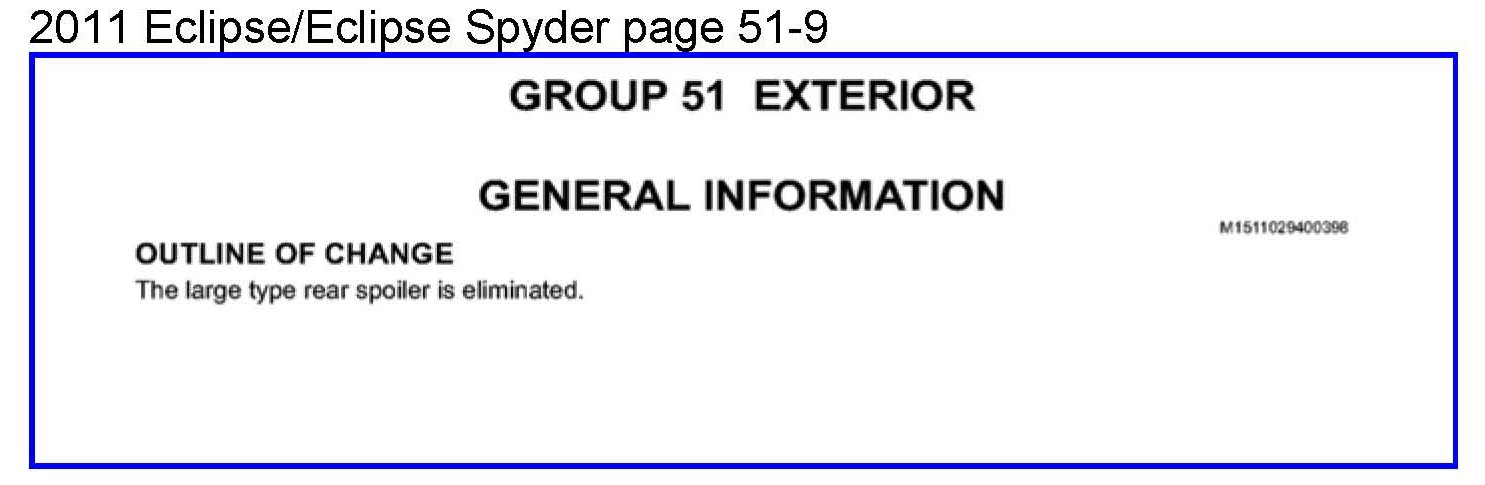 2011 Eclipse/Eclipse Spyder pages 00-18 through 00-21, 00-41 through 00-46, 23A-70, 35C-125 through 35C-137, 35C-234, 51-9, 90-432 through 90-447