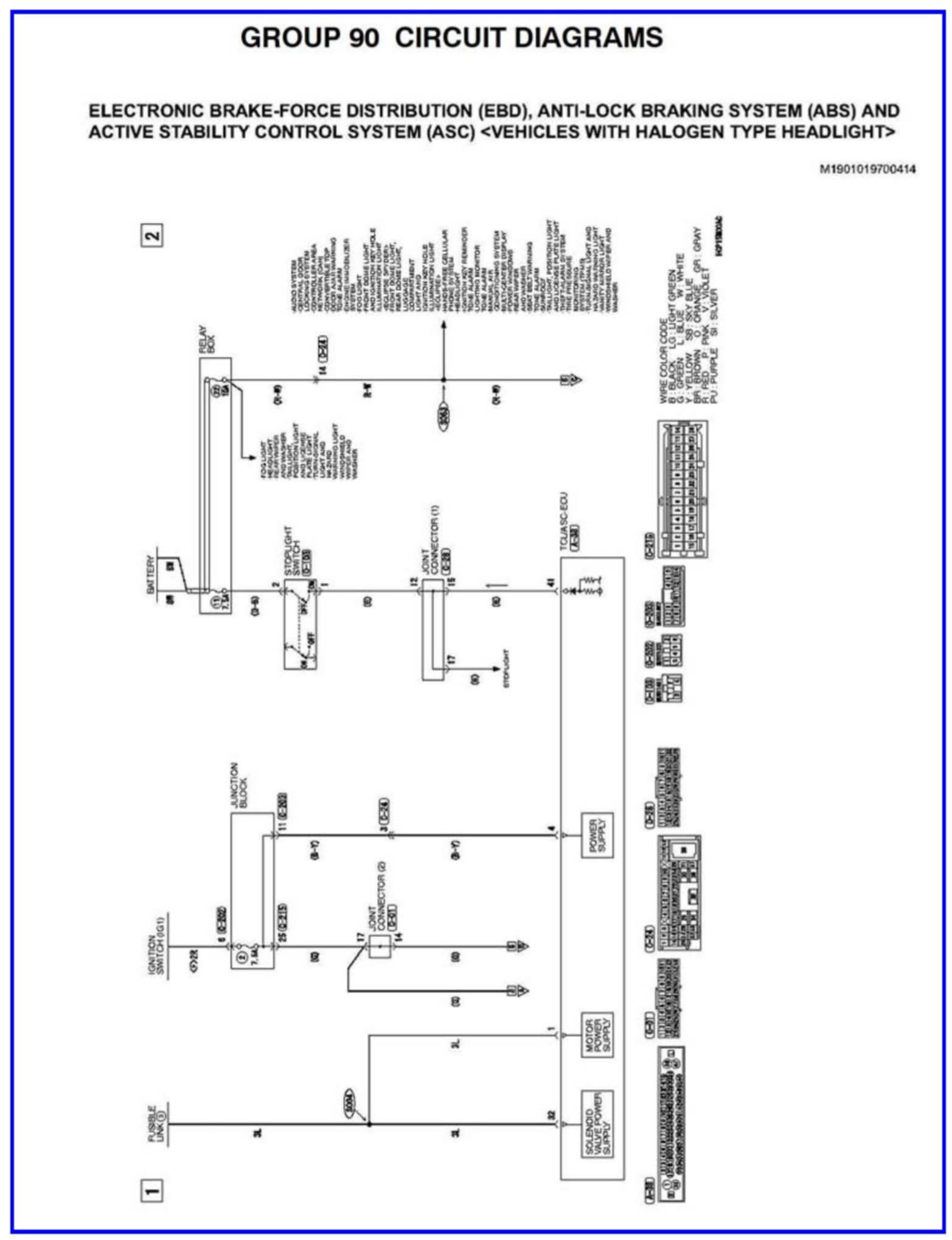 ^ Group 90 - Circuit Diagrams: Changed to Traction Control/Active Stability Control System diagrams due to change in G and Yaw Rate Sensor connector.