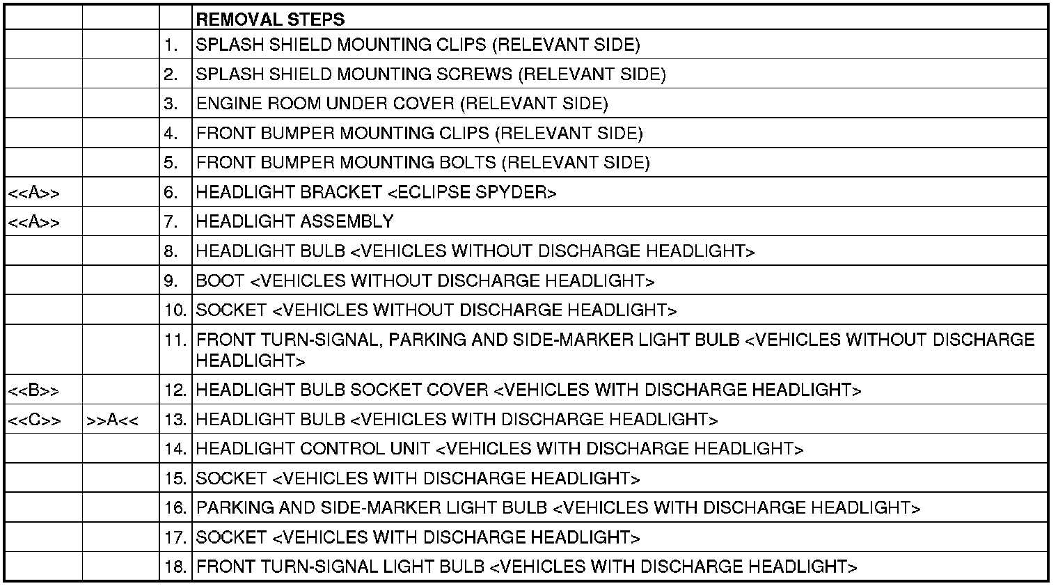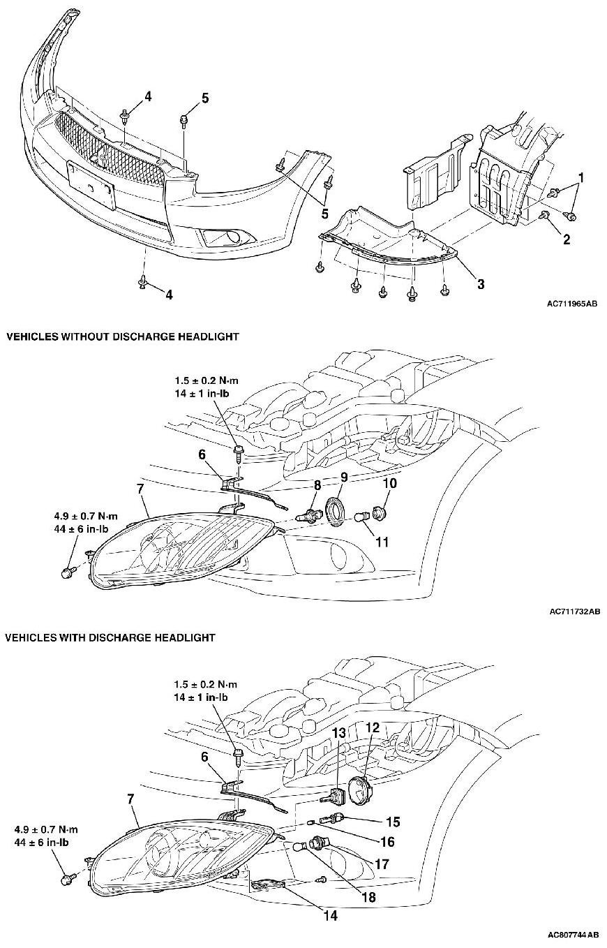 Remove the headlight bracket [ECLIPSE SPYDER] and the headlight assembly with the applicable side of the front bumper slid downward slightly.