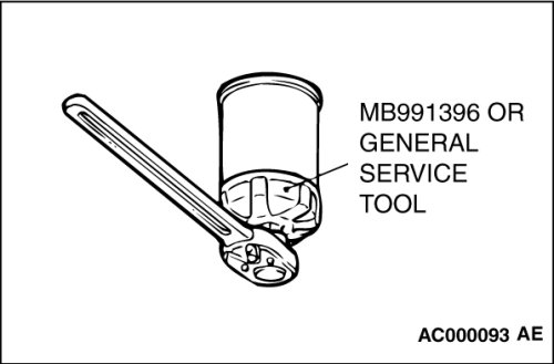 5. Where the oil filter O-ring touches the oil pan flange, tighten the oil filter to the specified torque using the commercially-available tool.