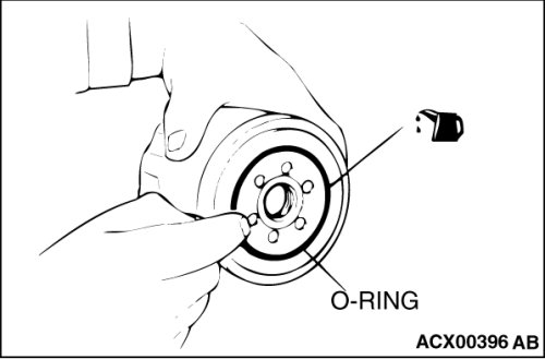 4. Apply a small amount of engine oil to the O-ring of the new oil filter.