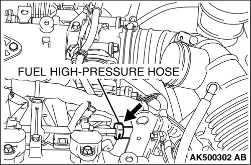 Disconnect the fuel high-pressure hose at the fuel rail side.