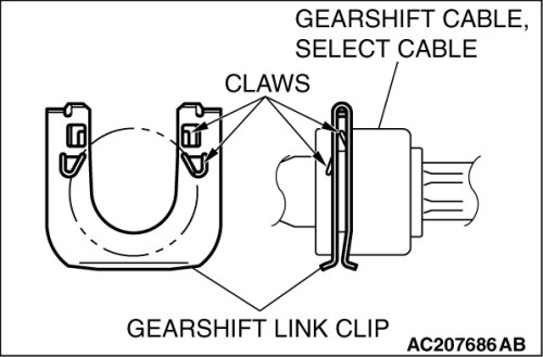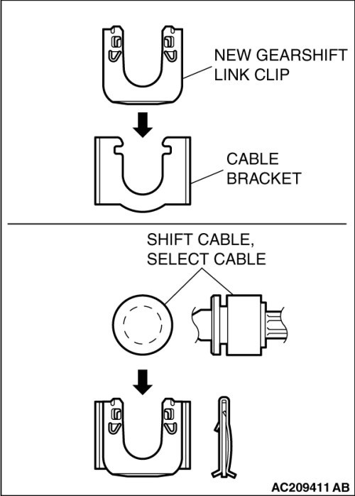 Insert thoroughly the gearshift link clip, shift cable and select cable until they click in place.