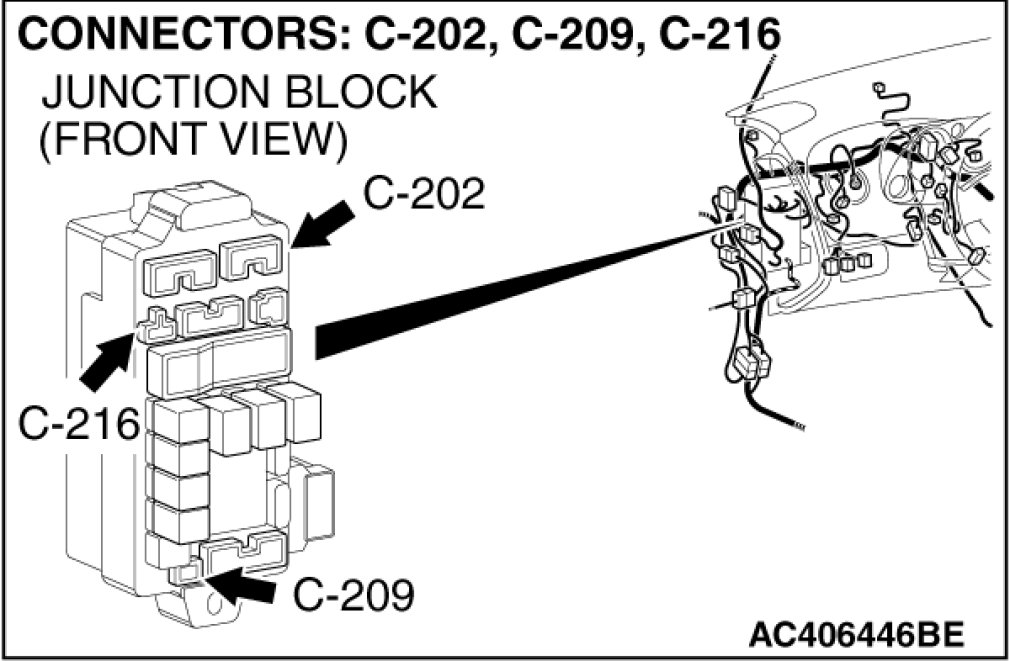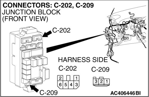 Also check junction block connectors C-202, C-209 and intermediate connector D-29 for loose, corroded, or damaged terminals, or terminals pushed back in the connector. If junction block connector C-202, C-209 or intermediate connector D-29 is damaged, repair or replace the damaged component(s) as described in Harness Connector Inspection Harness Connector Inspection.