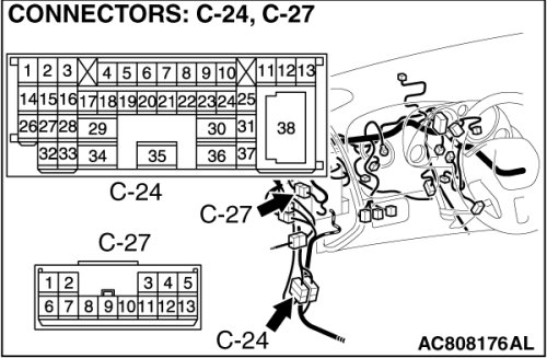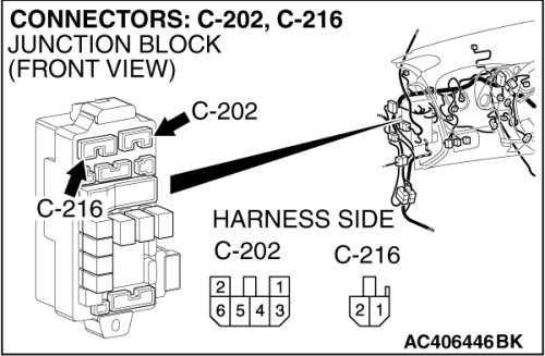 Also check junction block connectors C-202, C-216, intermediate connector C-24, C-27 and D-29 for loose, corroded, or damaged terminals, or terminals pushed back in the connector. If junction block connector C-202, C-216, intermediate connector C-24, C-27 or D-29 is damaged, repair or replace the damaged component(s) as described in Harness Connector Inspection Harness Connector Inspection.