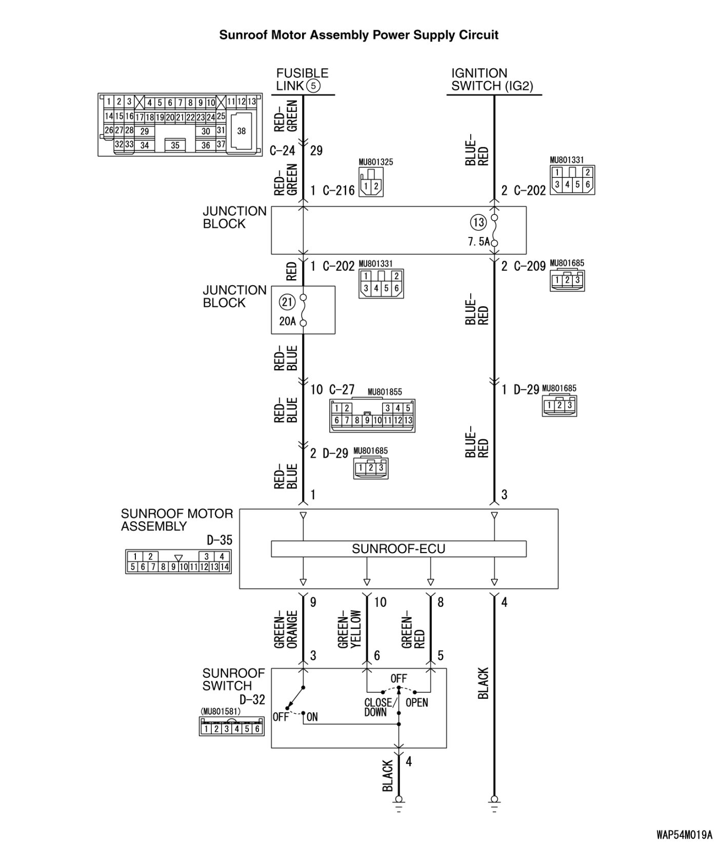 Q. Is sunroof motor assembly connector D-35 in good condition?