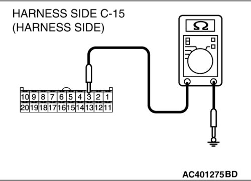 (1)Disconnect A/C-ECU connector C-15 and the battery harness, and measure at the wiring harness side.