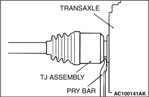- Do not pull on the drive shaft; doing so will damage the TJ; be sure to use the pry bar.