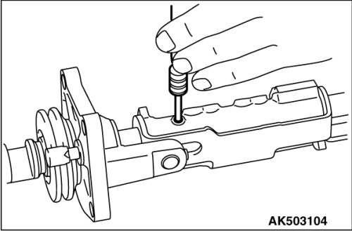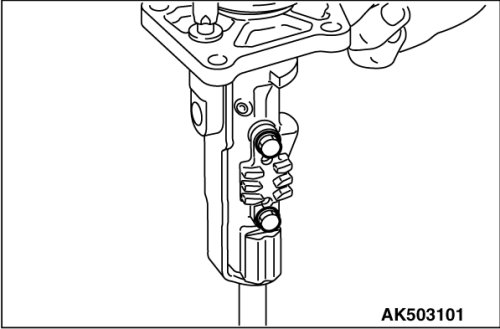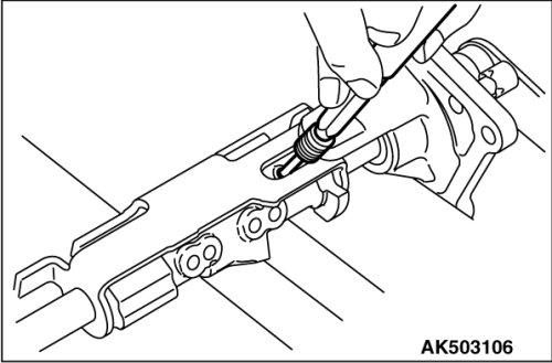 As shown in the illustration, remove the slotted spring pin, not touching the shift interlock plate No.1.