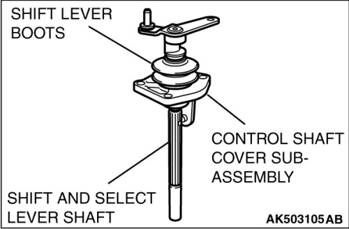 4. Remove the shift lever boots and then pull out the shift and select lever shaft from control shaft cover sub-assembly.