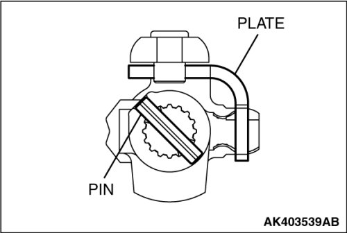 7. Install the straight pin and shift guide plate and tighten to the specified torque.