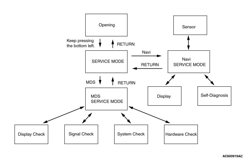 When "RETURN" is touched on the MDS (multi-center display) service menu screen, the MDS (multi-center display) service menu ends, and the screen returns to the service mode top menu.